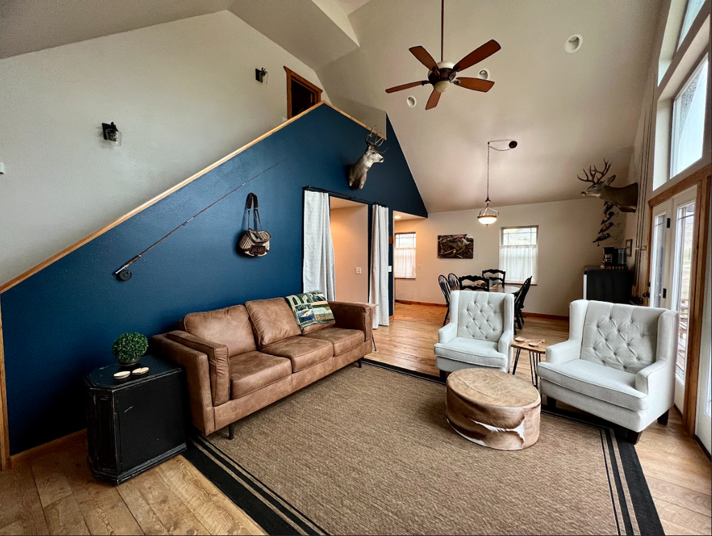 On DeMark Lodge is an intimate family style lodge with 3 bedrooms, each with two queen size beds and 2 full baths. Enjoy a warm breakfast in the morning, streamside lunch and hearty home cooked dinner. The outside deck provides the perfect setting to enjoy a post fishing glass of wine while taking in all the beauty that Montana has to offer.