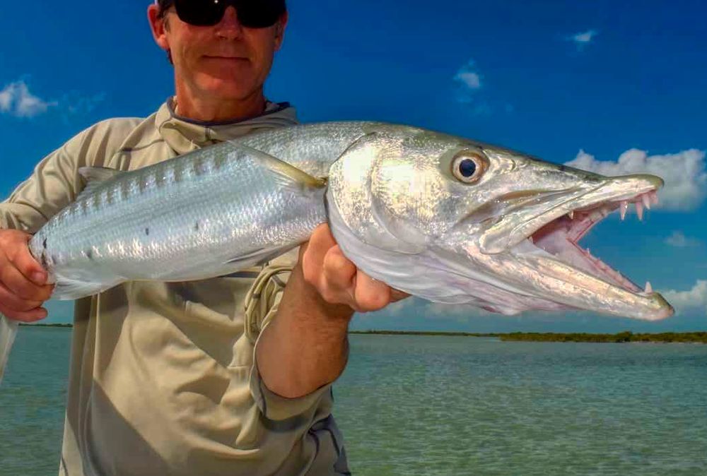 A barracuda is a large, predatory ray-finned fish known for its fearsome appearance and ferocious behaviour. The barracuda is a saltwater fish of the genus. There are about 20 species of Barracuda and are found in all warm and tropical regions. Swift and powerful, they are slender in form, with small scales, two well-separated dorsal fins, a jutting lower jaw, and a large mouth with many large, sharp teeth. Size varies from rather small 4–6 feet in the great barracuda of the Atlantic, Caribbean, and western Pacific. Barracudas are often regarded as bold and inquisitive, and large ones are regarded as fearsome fishes, potentially dangerous to humans. The threat, though probably exaggerated, is real; the great barracuda is known to have been involved in attacks on swimmers.